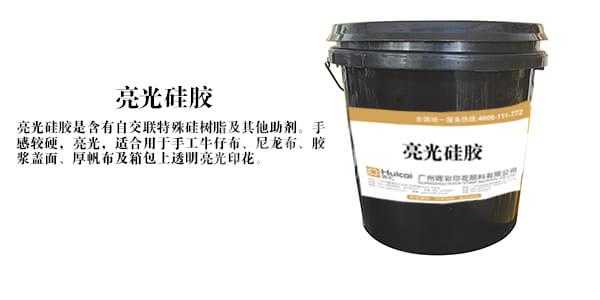 亮光透硅胶是含有自交特殊硅树脂及其他助剂,产品弯曲及回弹性强,干湿擦特强,表面成硬膜坚硬,透明亮光,抓布特强,在摄氏零下20度不会龟裂,特别适合胶浆表面印花,水性硅胶适合用于手工牛仔布、尼龙布、胶浆盖面、厚帆布及箱包上透明亮光印花